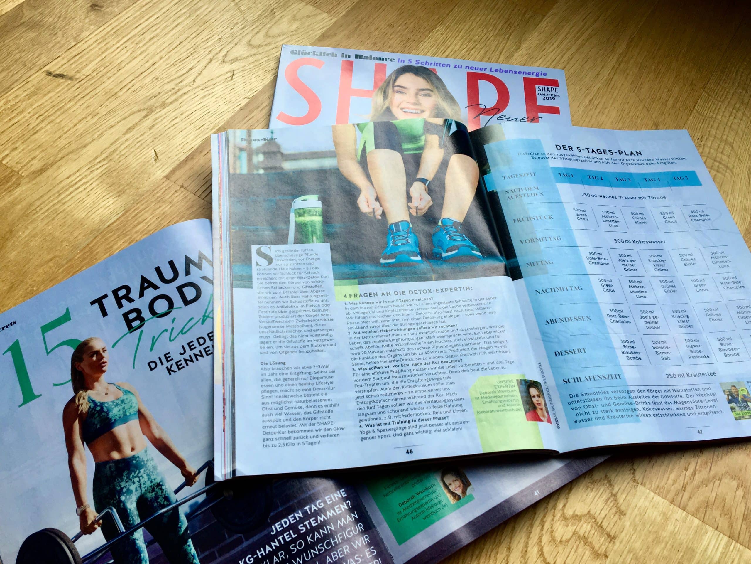 Wie bauen wir Giftstoffe schneller ab? Und wie unterstützen wir unsere Leber? Was gibt es bei einer Detox-Kur zu beachten? Zu diesen Fragen habe ich die Redaktion SHAPE in der Januar/ Februar-Ausgabe 2019 beraten.